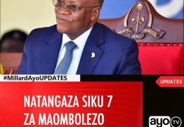 Posted on: July 23rd, 2020 #RIPMZEEMKAPA Rais Magufuli ametangaza siku 7 za maombolezo ya Kitaifa kuanzia leo Ijumaa July 24,2020 kufuatia kifo cha Rais Mstaafu wa Awamu ya Tatu wa Tanzania Benjamin William Mkapa kilichotokea D...