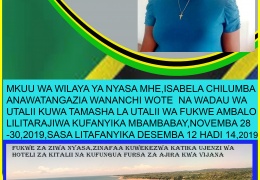 Posted on: November 21st, 2019 Tamasha la Utalii lililokuwa lifanyike Novemba 28-30 mwaka huu limesogezwa mbele ,hivyo litafanyika Desemba 12-14 mwaka huu mjini Mbamba-bay Wilayani Nyasa....
