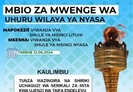 Posted on: June 7th, 2024 KARIBU MWENGE WA UHURU WILAYANI NYASA MWENGE wa Uhuru unatarajia kukimbizwa wilayani Nyasa Juni 12 ,2024 Kwa mujibu wa ratiba ya Mwenge wa Uhuru 2024,Mwenge wa Uhuru utapokewa wilayani hapa ukit...